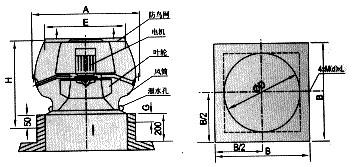 (1)軸流式玻璃鋼屋頂風機,代號為DWT-I型,具有風量大,壓力較離心式風機低的特點;